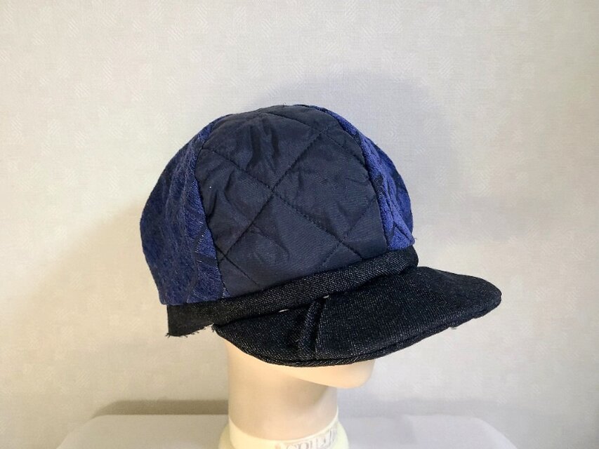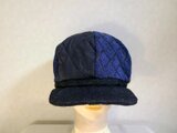 魅せる帽子☆【予約販売】キルティングと格子柄のバイカラーキャスケット~ネイビー&ブラック