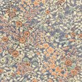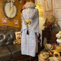 落ち着いたブルーパープル(藤鼠)の地に、オレンジや水色の小花が隙間なくデザインされたリメイクワンピースです。 どこかレトロで可愛らしい雰囲気は、大切な友人との再会や記念日のディナーにぴったり。纏うだけで仕草まで優雅に見せてくれる、魔法のような一着です。