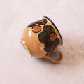 黄土色の背景に、ダークブラウンとキャメルの花。