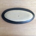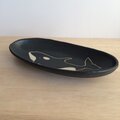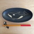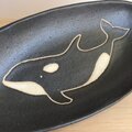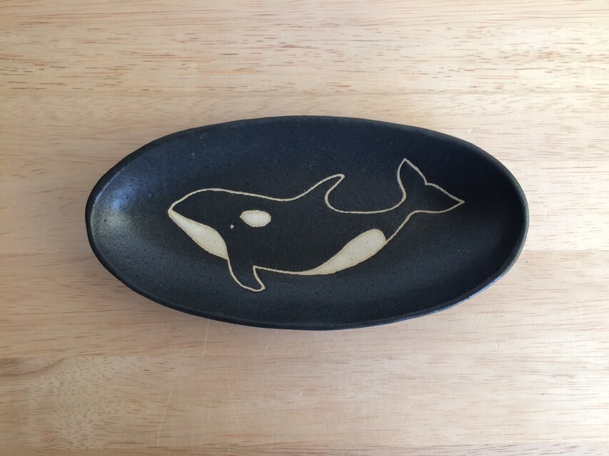 シャチ部分は白と黒の釉薬で掛け分け、輪郭部分は無釉です。