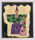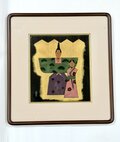 黒漆塗りの色紙に,色漆や金粉を使って「おひなさま」を描いた漆額です。おひなさまを飾るスペースがない方も、この額を壁に掛けるだけで、手軽に華やいだ桃の節句を祝うことができるのではないでしょうか。