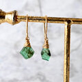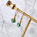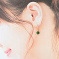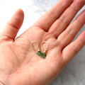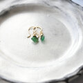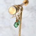 こちらは深いグリーンが印象的な8mmサイズのエメラルドをシンプルに一粒使用。グリーンとゴールドが醸し出すエキゾチックなヴィンテージ感とボヘミアンスタイルをお楽しみいただけます。フックはオリジナルのハンドメイドで、一つひとつ丁寧に仕上げています。