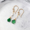 新緑を連想させるような鮮やかなグリーンカラーが美しいブラジル産宝石質エメラルドを使用したピアスシリーズ。程よく内包物が入ったナチュラルな姿、眩い艶と輝きがとても魅力的です。ラフなスライスカットで縁もカットされており光を反射する姿がとても綺麗です。ピアスフックもオリジナルのハンドメイドで、一つひとつ丁寧に仕上げました。