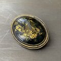 キラキラと輝くアーティスティックなエナメルが魅力的なヴィンテージブローチ。かなり大ぶりでインパクトのあるデザインです。存在感がありスタイリングに個性的な雰囲気をプラスしてくれます。