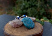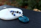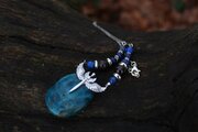 アパタイトは恋愛を守り、相手との絆を深めてくれる石。さらに幸運を引き寄せる6ミリのラピスラズリ、その間にAAA級のアイオライト。アイオライトは一途に愛を貫いて、結婚に結びつける石と言われています。