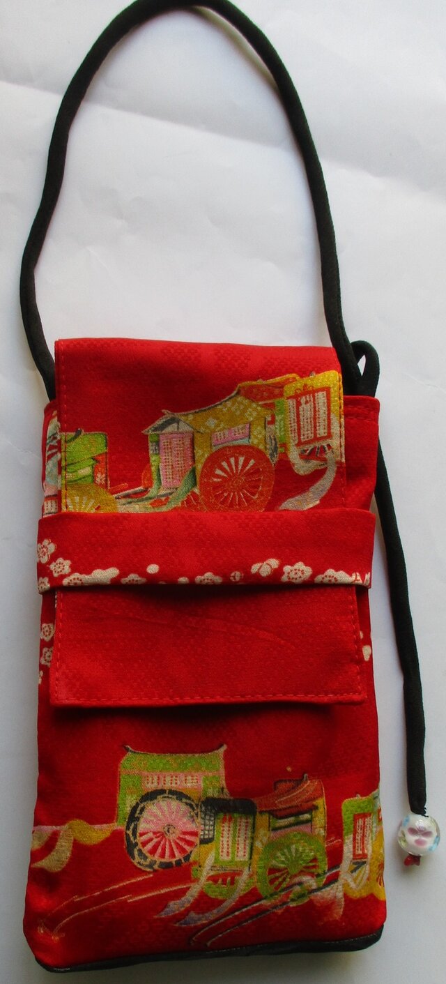 8618 花柄の着物で作ったスマホポーチ