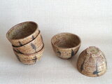 描く時に使用した鉄釉は、原材料を近くの田んぼから採取して自陶房で調合したものです。高台も丁寧に仕上げています。温かい色とざらりとした土の質感に鉄絵が映える器です。丸みのある形が手になじみ土の温もりが心地よく伝わる作品です。