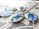 1950年代チェコのヴィンテージ、勿忘草モチーフの大きく華やかなGlassカボションを用いてお作りしましたネックレスです。