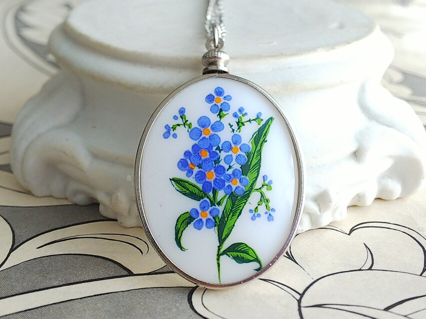 ヴィンテージ 勿忘草(40×30㎜)Silverカラーセッティング ネックレス