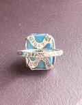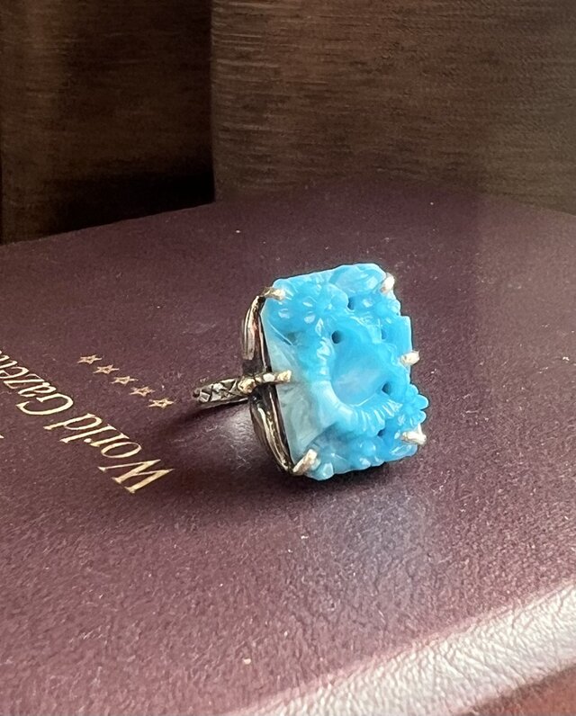 ターコイズブルーのグラスカメオ。お花柄がモチーフ。
