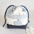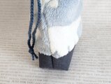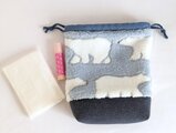 もこもこ素材で仕立てた、白くまモチーフの巾着袋です。