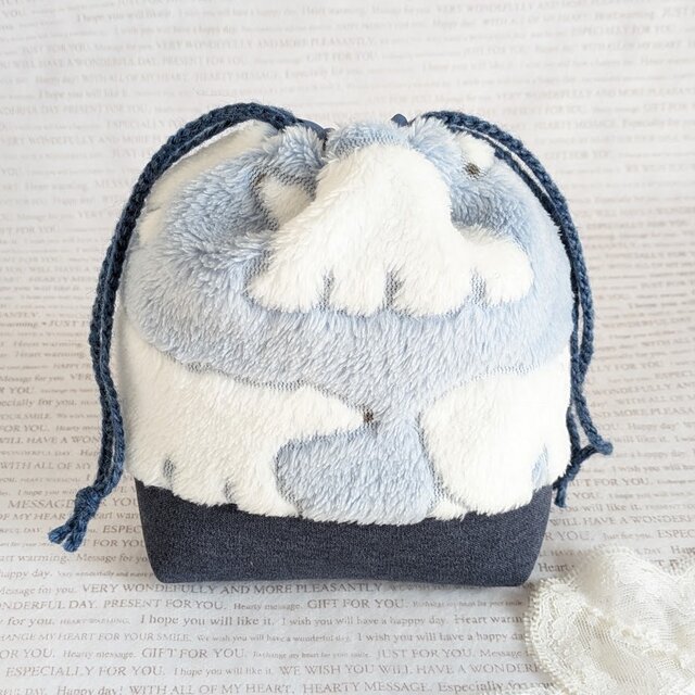 #しろくま #シロクマ #マチ付き #巾着 #モコモコ #大人可愛い #ほっこり #水色 #ブルー