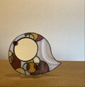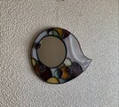 丸いガラスと動きのあるガラスを組み合わせたステンドグラスの壁掛け用鏡です。