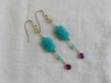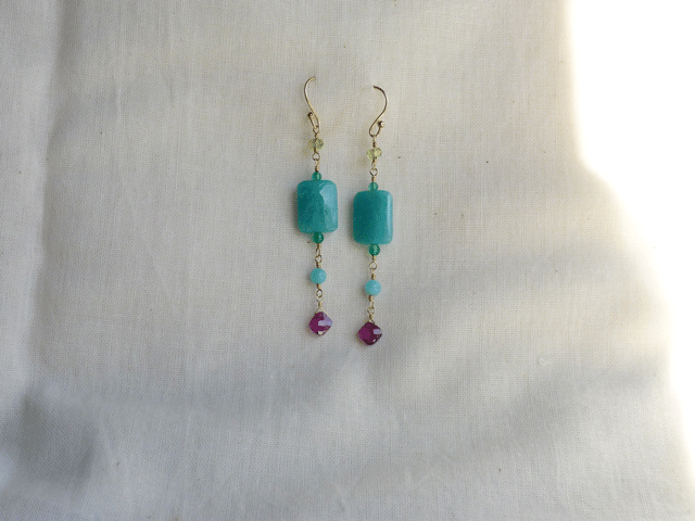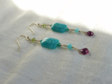 四角い緑味のあるロシア産アマゾナイトと水色のペルー産アマゾナイトを使ったピアスです