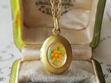 ヴィンテージ アプリコット色のお花のロケットペンダント ネックレス