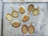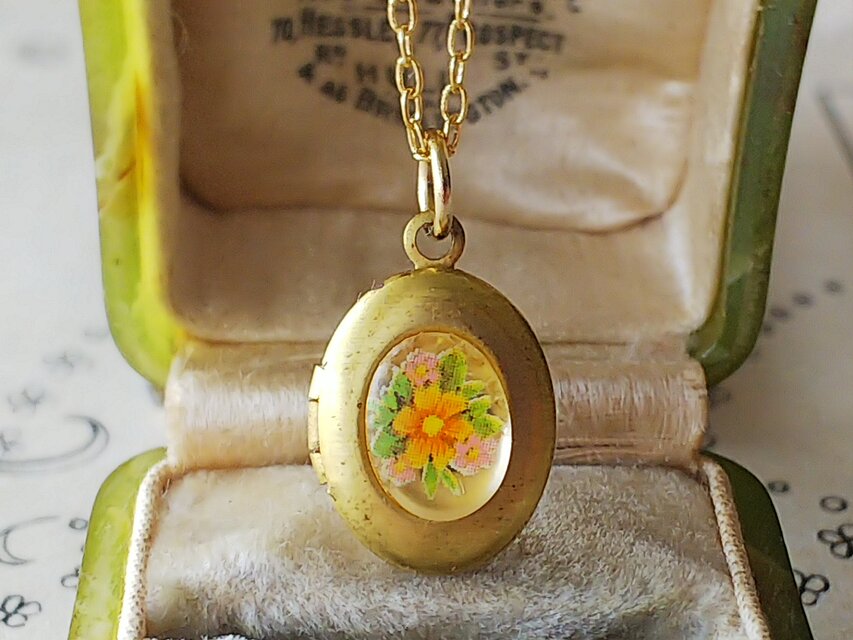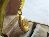 古めかしく愛らしいアプリコット色のお花のカボション付きのロケットペンダントネックレスです。