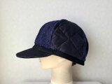 魅せる帽子☆【予約販売】キルティングと格子柄のバイカラーキャスケット~ネイビー&ブラック