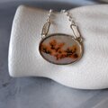 まるで河川敷の桜並木の景色のようなほんのりオレンジピンクを帯びたデンドリティックアゲートをシルバーネックレスに仕立てました。