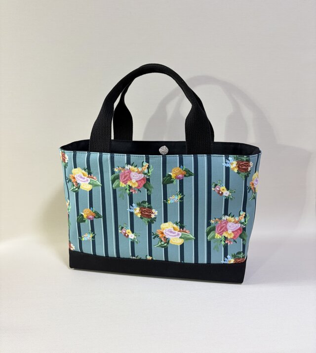 デザイナーが描くアートを日常に。華やぎと規律が織りなすストライプとアンティークフラワー・横長トートバッグ