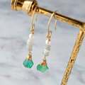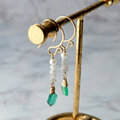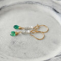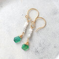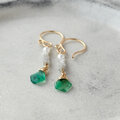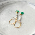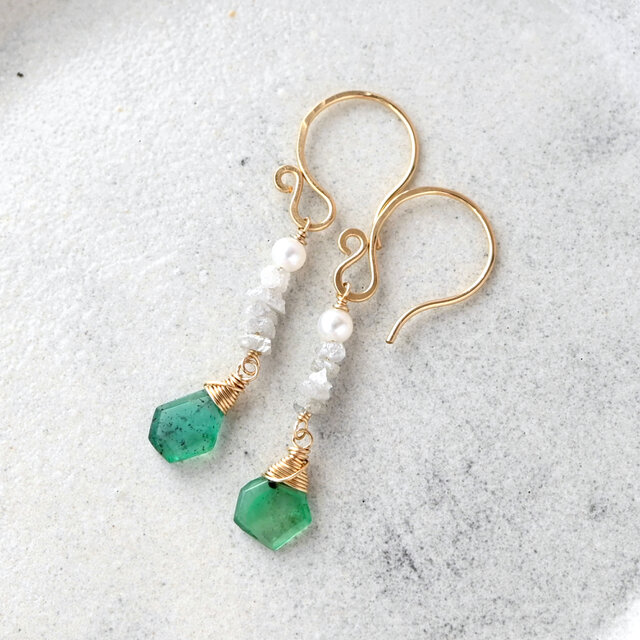 スライスカットエメラルドと原石ダイヤ&淡水パールのピアス・イヤリング変更可