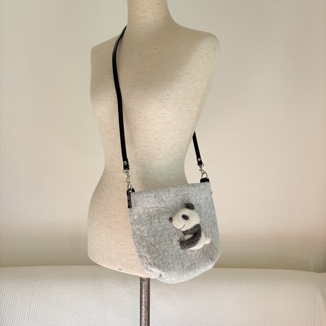 パンダロスの私が連れて歩きたくなる大人っぽい横顔パンダのモチーフを刺繍しました。
