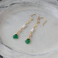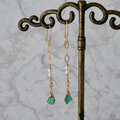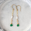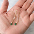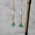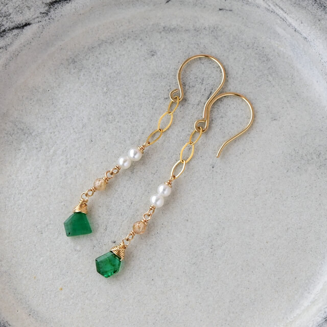 スライスカットエメラルドと淡水パールのミドルレングスピアス・イヤリング変更可