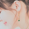こちらは発色の美しい小粒のエメラルドに淡水パール・ブラウンジルコン・14kgfオーバルチェーンを組み合わせたミドルレングスピアス。耳元でナチュラルな石たちがきらめくザインピアス。カジュアルからドレッシーまでどんなシーンにもマッチします。