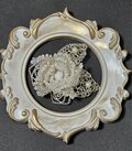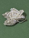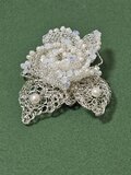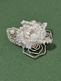 お花の中央は、天然石マザーオブパールをバラの花の形にしたものです。