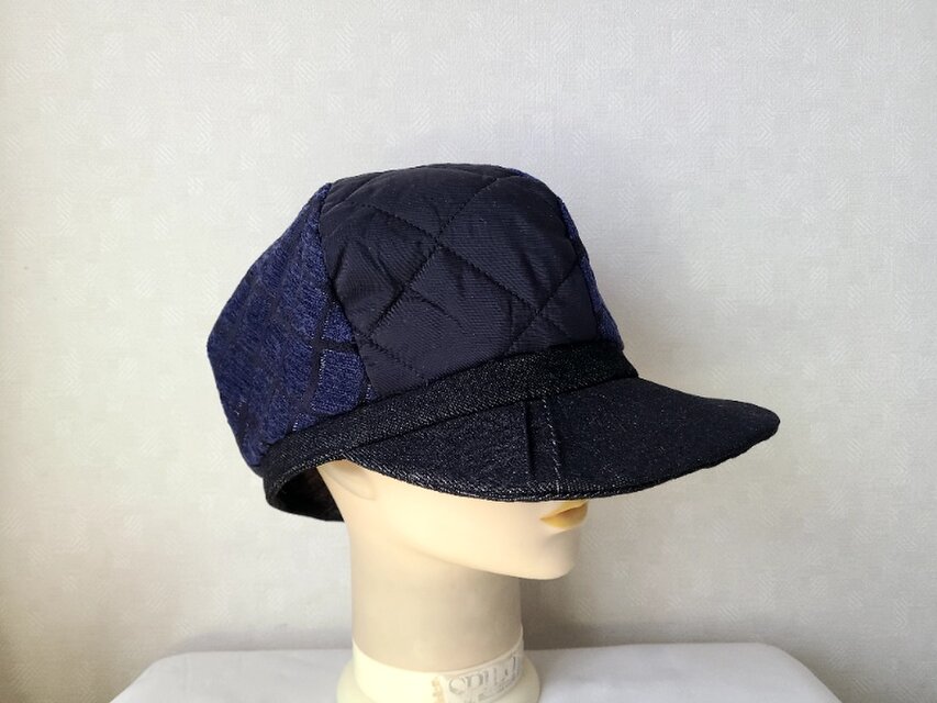 異素材の組み合わせが面白い6枚接ぎのキャスケット♪