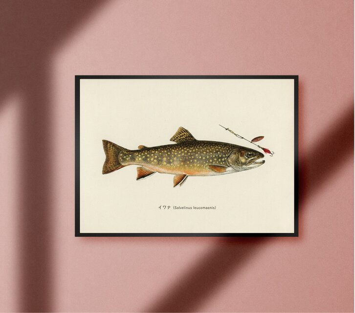 イワナの美しいイラストが描かれたフレーム付きアート。