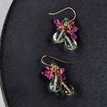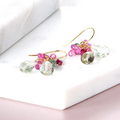 澄光の Bouquet―プラジオライトxピンクサファイアxエメラルドピアス14kgf