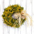 その為、どこから見てもミモザが入っているボリューム感のあるリースに仕上がっています。