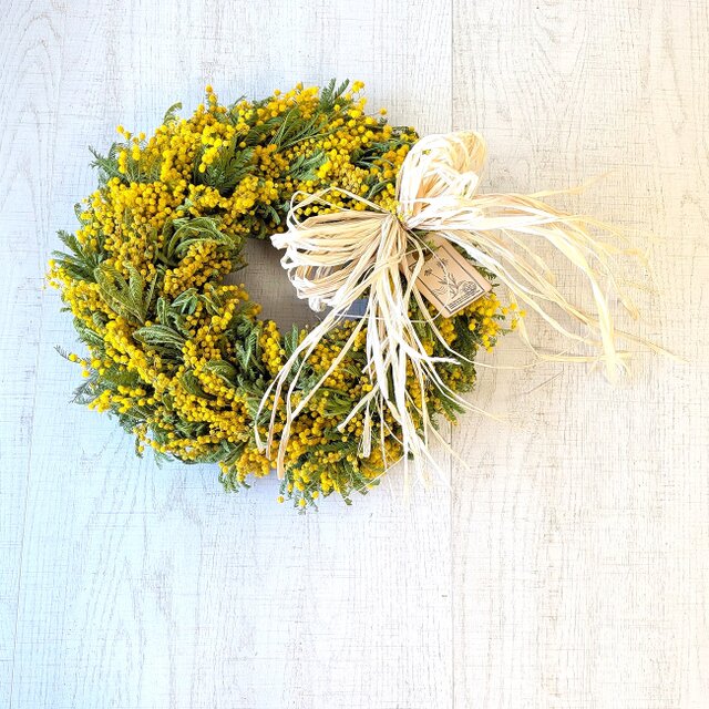 贅沢に…リース台グルリと一周、全てミモザを使っています。