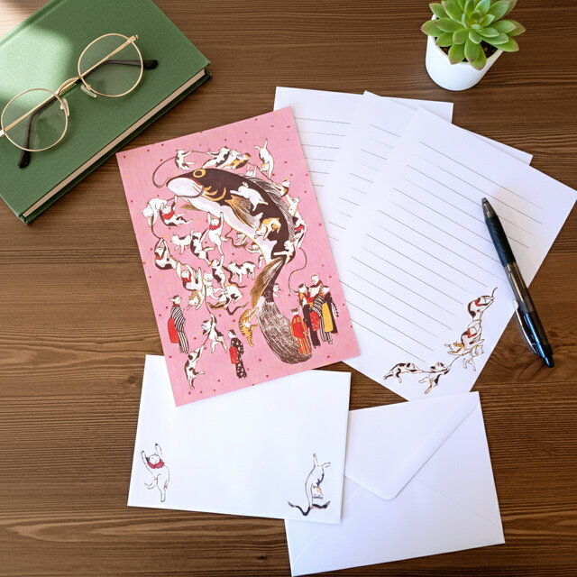 江戸時代後期に制作された浮世絵作品をモチーフに、海月堂がオリジナルでデザインしたレターセットです。