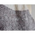 ベースのホワイトアルパカに緯糸にカシミヤと交互に平織のデザインを半分、アルパカ、カシミヤを緯糸にヘリンボーンの綾織のデザインを織り上げました。