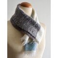 ホワイトのアルパカをベースにブラウンとブルーのカシミヤ糸を合わせた手織りの薄手マフラーです。