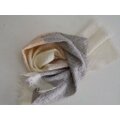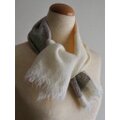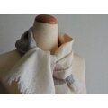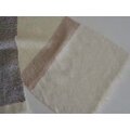 ホワイトのアルパカをベースにイエローやオークのカシミヤ糸を合わせた手織りの薄手マフラーです。