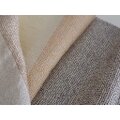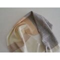 ベースのホワイトアルパカに緯糸にカシミヤと交互に平織のデザインを織り上げました。