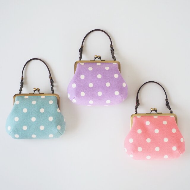 ■水玉ネルの持ち手付きがま口ポーチ■ recolte (fndot)