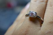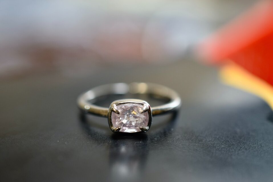 薄ピンクの大粒長方形スピネルを、シルバーリングにあしらいました。
