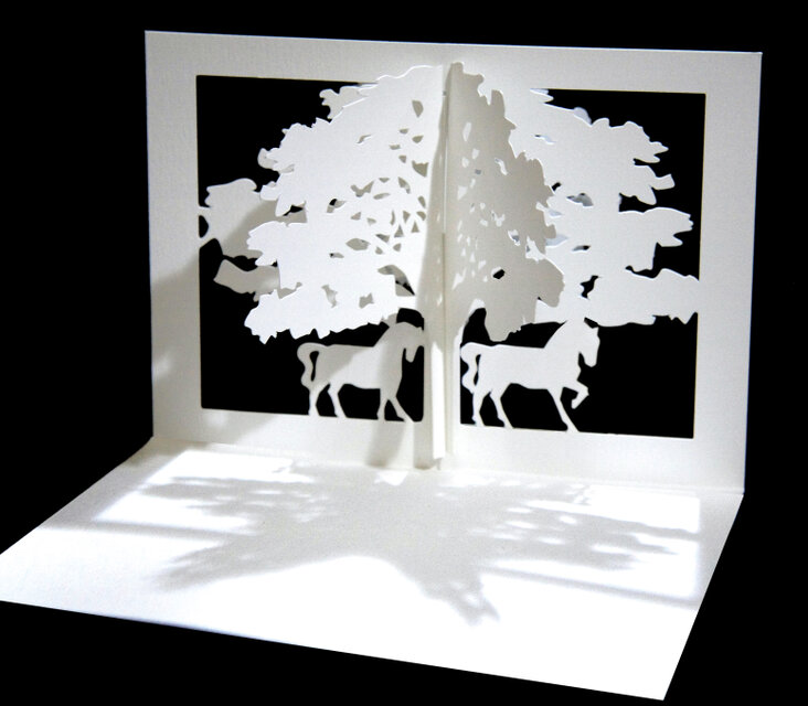 カードを開くと、森に佇む2頭の馬が立体的に現れます。