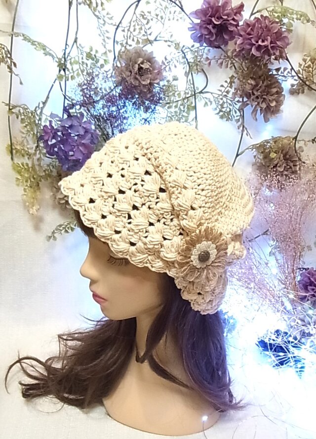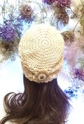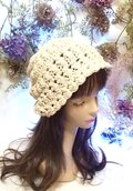 大きめな縄編みがインパクト大のお帽子で人目を引く事
