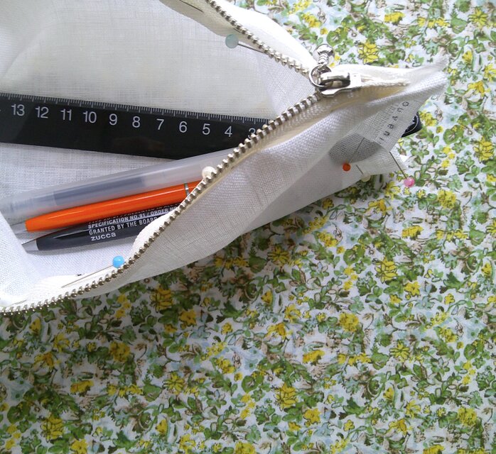 刺繍レースとリネンのファスナースタイルです。
