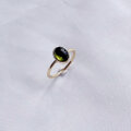 #ベスビアナイトカボション #リング #カーキ #抹茶 #葉っぱ #緑 #グリーン #カボションカット #春夏 #イタリア #通年 #1粒ジュエリー #オパール形 #天然石 #ゴールド #上品 #カジュアル #おしゃれ #お出かけ #デイリー #レディース #春 #森 #希少宝石 #煎茶 #一番茶