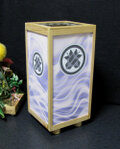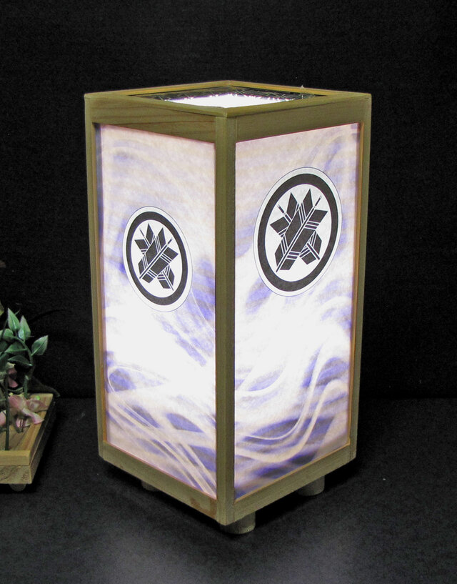 ◆『丸に違い矢』家紋の宿り木/至福の灯かり・心温まるひと時/83-26/LED・桧枠造・ラミネート加工・軽量/