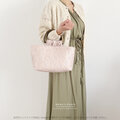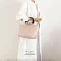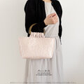 《シャンパンローズ ピンク レース》おしゃれな 花柄 小柄 木の持ち手 手提げ トートバック