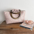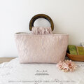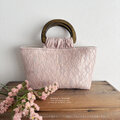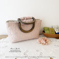 ⭐️《シャンパンローズ ピンク レース》おしゃれな 花柄 小柄 木の持ち手 手提げ トートバックです♪