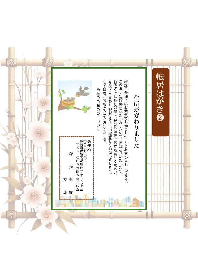 「転居はがき」サービス印刷/私製はがき・20枚コーナー❷/差出人刷り込み・送料無料/内容変更可/