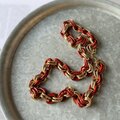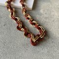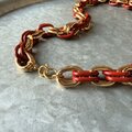 ゴールドトーンとボルドー寄りの落ち着いたテラコッタカラーにペイントされたダブルリンクチェーンのチャンキーなネックレス。