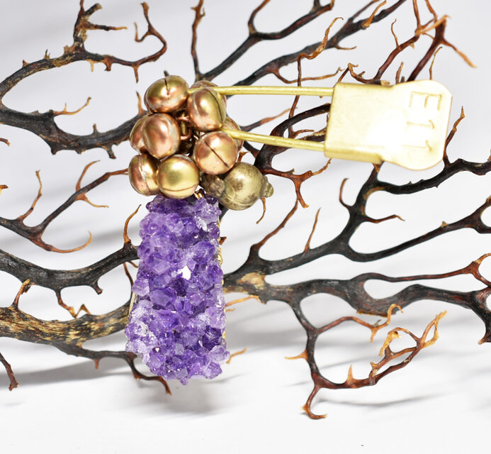 アメジストクラスターとたわわな鈴、アフガンパーツのランドリーピンブローチ